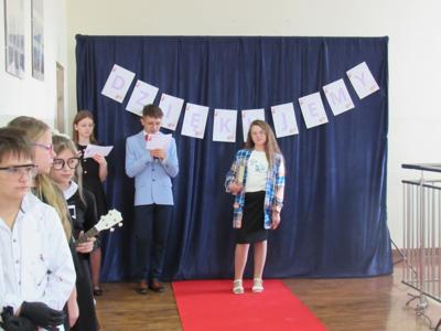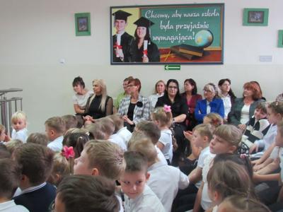 W dniu 13 października 2025 roku w naszej szkole odbyła się uroczysta akademia z okazji Dnia Edukacji Narodowej. W uroczystości tej wzięli udział: pani Dyrektor Ewa Adrianowicz, vicedyrektor pani Regina Ślęzak, przewodnicząca Rady Rodziców pani Marta Woraczek, grono pedagogiczne naszej szkoły i przedszkola, przedszkolaki i uczniowie szkoły podstawowej. Pani Dyrektor Ewa Adrianowicz złożyła wszystkim pracownikom oświaty serdeczne życzenia. Nagrodzonym nauczycielom wręczyła pamiątkowe dyplomy dziękując za dotychczasową pracę, życząc dalszych sukcesów. Po części oficjalnej odbyła się część artystyczna w wykonaniu uczniów klas: 4 i 7,8 szkoły podstawowej przygotowana pod kierunkiem nauczycieli: Eweliny Kluska i pani Anety Pasoń. Uczniowie w sposób humorystyczny przedstawili ,,nauczycielski pokaz mody” , wiersze i życzenia. Wysłuchaliśmy też piosenki ,,Wdzięczność" w wykonaniu Alicji Jałocha. Na zakończenie w dowód sympatii i wdzięczności uczniowie złożyli nauczycielom oraz wszystkim pracownikom piękne życzenia i wręczyli skromny, słodki upominek.
