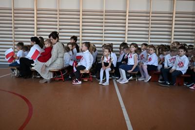 W dniu dzisiejszym z okazji Narodowego Święta Niepodległości przedszkolaki oraz nasi uczniowie na sali gimnastycznej o godzinie 11.11 w galowych odświętnych strojach odśpiewali 4 zwrotki Hymnu Państwowego włączając się tym do akcji Ministerstwa Edukacji Narodowej „Szkoła do hymnu”. Wspaniała postawa wszystkich uczniów świadczy o tym, że ,,lekcja historii" została zaliczona na piątkę