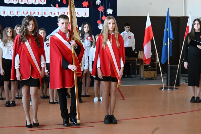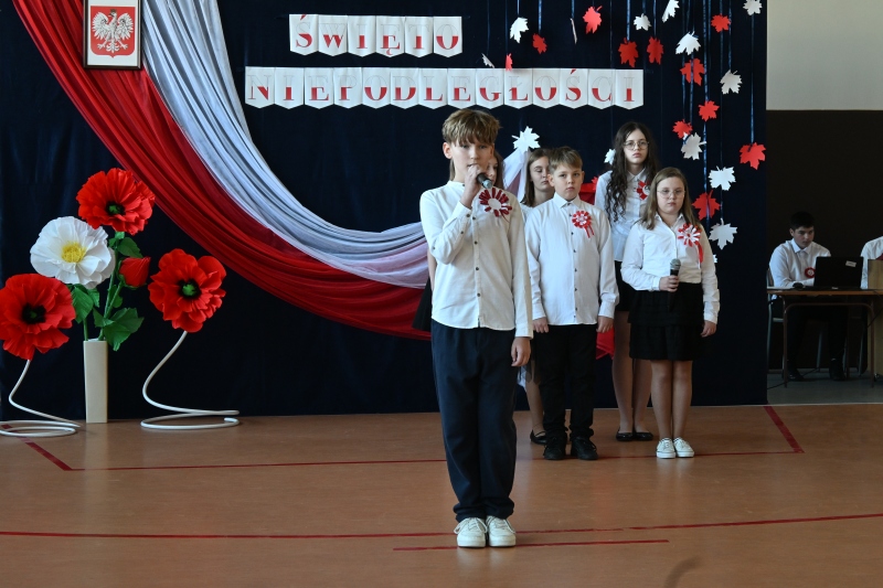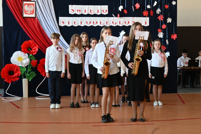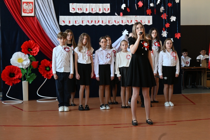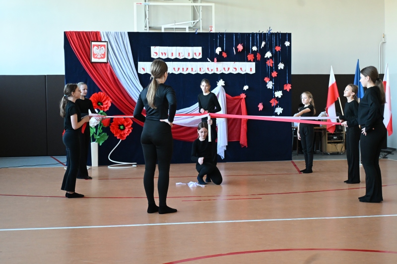 Słowem, tańcem i piosenką uczniowie zaprezentowali dzieje i drogę naszego kraju do niepodległości, nawiązując do okresu zaborów, powstań narodowych oraz I wojny światowej. Wybrzmiały najpiękniejsze wiersze polskich poetów, niosące przesłanie miłości do ojczyzny, żywe w sercach Polaków i przypominające o cenie jaką trzeba zapłacić za niepodległość i suwerenność. Uroczystość nabrała szczególnego charakteru dzięki pięknym dźwiękom saksofonu oraz pieśniom patriotycznym, które wprowadziły publiczność w nastrój zadumy. Uczniowie wzbogacili wydarzenie tańcem i piosenkami, wnosząc energię i młodzieńczą radość do obchodów święta. Akademia z okazji 11 listopada była okazją do wspólnej refleksji oraz cieszenia się pięknem poezji i muzyki.