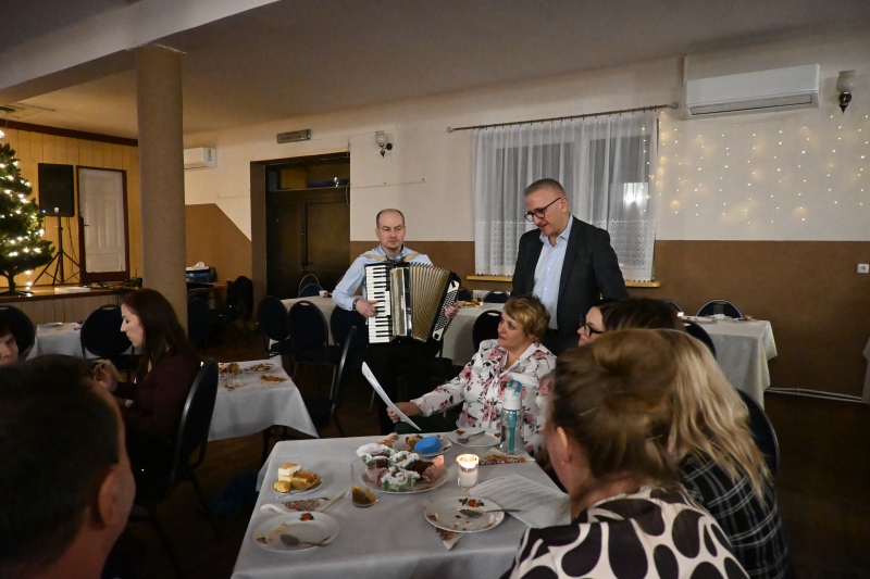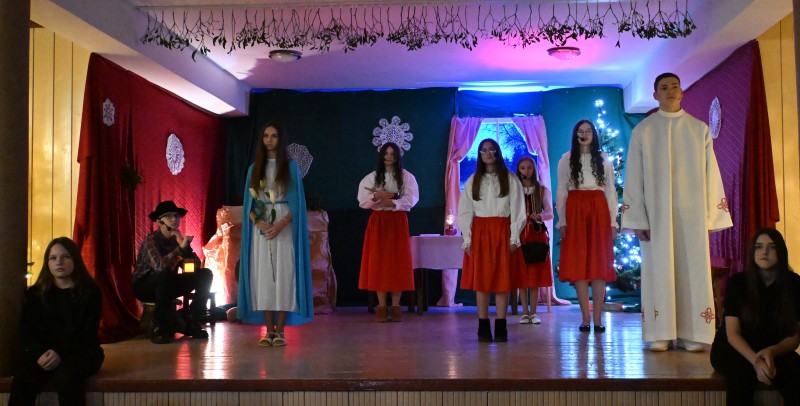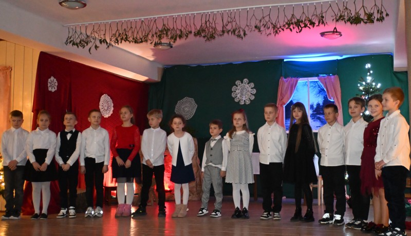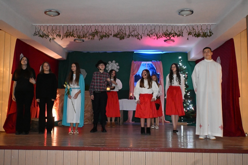 W dniu 14 grudnia 2025r. w Domu Kultury Filia Konieczno odbyło się wyjątkowe wydarzenie świąteczne, które połączyło radość Bożego Narodzenia z niesieniem pomocy innym. Zorganizowany został charytatywny kiermasz stroików bożonarodzeniowych, wykonanych z wielkim zaangażowaniem przez uczniów oraz ich rodziców. Każdy stroik był niepowtarzalny i odzwierciedlał ogrom serca włożony w jego przygotowanie. Kiermasz został połączony z pięknym Misterium Bożonarodzeniowym w wykonaniu uczniów klas VI–VIII, opracowanym przez ks. Tomasza Szotę. Młodzi aktorzy w niezwykle poruszający sposób przybliżyli widzom istotę świąt, tworząc wyjątkową, pełną refleksji atmosferę. Po części teatralnej na scenie wystąpili: przedszkolaki oraz uczniowie klas 0–III, którzy zaprezentowali znane kolędy i pastorałki, wzruszając publiczność swoją radością i naturalnością. Dodatkową atrakcją był występ ucznia klasy VII, który zagrał kolędy na akordeonie. Wspólnie z nami tę uroczystą chwilę przeżywali: Burmistrz Gminy Włoszczowa z małżonką, pani Dyrektor Ewa Adrianowicz, pani vicedyrektor Regina Ślęzak, dyrektor OSiR pani Jolanta Tyjas, proboszcz parafii Grzegorz Olejarczyk, kierownik DK filia Konieczno pan Michał Dudkiewicz, sołtys Konieczna pani Krystyna Szczegielniak, przewodnicząca Rady Rodziców pani Marta Woraczek, radny gminy Włoszczowa pan Zbigniew Pasoń i Naczelnik Straży Pożarnej w Koniecznie pan Daniel Drozdowski. Na zakończenie tej magicznej uroczystości głos zabrali kolejno: pani dyrektor Ewa Adrianowicz, Burmistrz pan Grzegorz Dziubek oraz dyrektor OSiR pani Jolanta Tyjas, którzy podziękowali organizatorom za zaproszenie, wszystkim zebranym zaś, za liczny udział i złożyli bożonarodzeniowe życzenia. Wydarzenie było nie tylko pięknym przeżyciem artystycznym, ale także doskonałym przykładem wspólnoty i wrażliwości na potrzeby innych. Dzięki wspólnemu zaangażowaniu udało się stworzyć prawdziwie świąteczną atmosferę pełną dobra i życzliwości. Dziękujemy wszystkim zaangażowanym w przygotowanie świątecznych stroików - uczniom, rodzicom oraz wszystkim, którzy odwiedzili nasz kiermasz, podziwiali ozdoby i wrzucali swoje datki do kiermaszowych puszek.