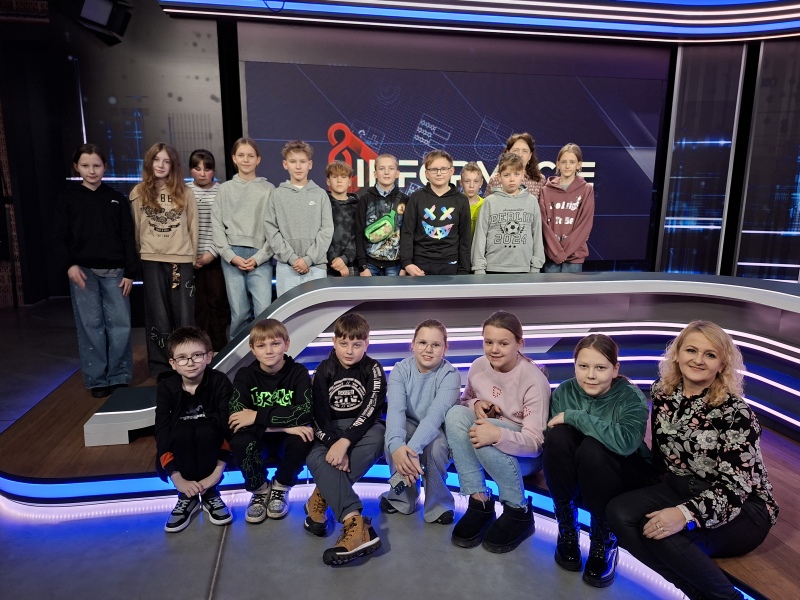 W dniu 3 grudnia 2025r. uczniowie klasy 5 wzięli udział w wyjątkowej wycieczce do Kielc, która była nagrodą zdobytą w konkursie Odblaskowa Szkoła ufundowaną przez TVP3 Kielce. Dzieci miały okazję zwiedzić nowy, nowoczesny budynek studia TVP3, gdzie z bliska zobaczyły, jak wygląda praca dziennikarzy, realizatorów dźwięku oraz obsługi technicznej. Uczniowie odwiedzili studia nagraniowe, reżyserkę oraz miejsca, w których powstają audycje i serwisy informacyjne. Największą atrakcją dla wielu okazała się możliwość zobaczenia profesjonalnego sprzętu telewizyjnego oraz poznania tajników pracy „na żywo”. Dziennikarze chętnie opowiadali o swojej codzienności, a uczniowie zadawali mnóstwo pytań. Drugą częścią wyjazdu był wspólny seans filmowy w kinie Helios. Piątoklasiści obejrzeli film „Skrzat”, który stał się świetnym dopełnieniem całego dnia. Film opowiada o jedenastoletniej Hani, która po przeprowadzce do innego miasta musi odnaleźć się w zupełnie nowym środowisku. Nie ma tu przyjaciół, a w dodatku wiara w istnienie skrzatów naraża ją na drwiny ze strony rówieśników. Kiedy dziewczynki z klasy zabierają jej medalik – bezcenną rodzinną pamiątkę – Hania postanawia odzyskać go za wszelką cenę. By tego dokonać, musi udowodnić, że skrzaty istnieją naprawdę. W tej pełnej przygód misji pomoże jej Michał – szkolny outsider i młody wynalazca. To dzięki jego wsparciu Hania ponownie otworzy się na świat i zrozumie, że prawdziwa magia kryje się w przyjaźni. Wycieczka okazała się nie tylko nagrodą, ale również interesującą lekcją medialną i okazją do wspólnego spędzenia czasu. Uczniowie wrócili pełni wrażeń i nowych doświadczeń.