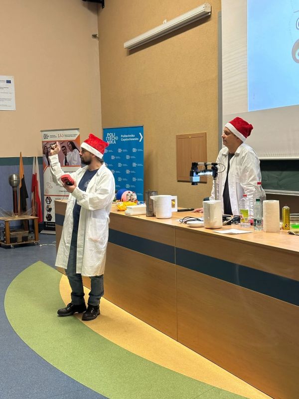 W dniu 5 grudnia 2025r. 54- osobowa grupa uczniów klas 6-7-8 wraz z opiekunami paniami: Eweliną Kluska, Magdaleną Ciesielską, Dorotą Wojciechowską i Anetą Pasoń uczetniczyła w edukacyjno-integracyjnej wycieczce do Częstochowy. Pierwszym punktem programu było zdobywanie wiedzy podczas warsztatów zorganizowanych przez studentów Politechniki Częstochowskiej na Wydziale Inżynierii Produkcji i Technologii Materiałów w Katedrze Fizyki. Mikołajkowy Pokaz Doświadczeń z Chemii i Fizyki był doskonałą okazją, aby z bliska przyjrzeć się fascynującym zjawiskom naukowym oraz poznać praktyczne zastosowanie teorii. Następnie uczniowie odwiedzili lodowisko, gdzie doskonalili swoje umiejętności jazdy na łyżwach. Na zakończenie udali się do kina na fascynujący film ,,Zwierzogród 2", w którym detektywi Judy Hops i Nick Bajer depczą po piętach pewnemu nieuchwytnemu gadowi, który zjawia się w mieście ssaków i wywraca je do góry nogami. Aby rozgryźć tę sprawę, policjanci muszą buszować incognito po nieznanych im dzielnicach, których mroczne realia wystawią na próbę ich partnerski układ.