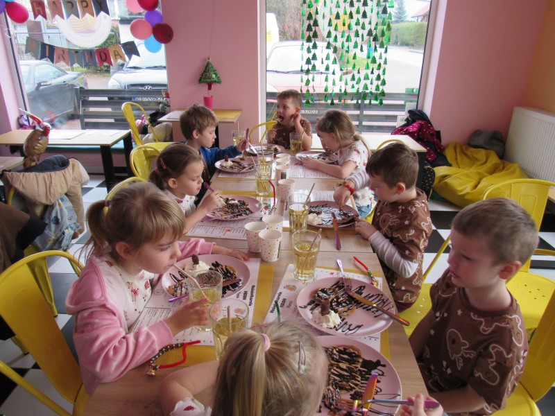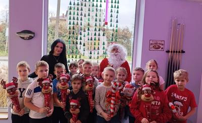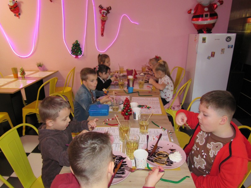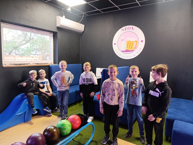 W dniu 8 grudnia 2025r zerówkowicze naszej placówki wraz z wychowawczynią panią Anną Konarską-Ciupa, a w dniu 12 grudnia uczniowie klasy 2 z wychowawcznią panią Moniką Świerczyńską uczestniczyli w Mikołajkach organizowanych przez animatarów Kręgielni Neon we Włoszczowie. Tegoroczne mikołajki upłynęły w atmosferze świątecznego ciepła i wspólnej zabawy. Najważniejszym punktem spotkania była oczywiście wizyta samego Świętego Mikołaja, który przybył z wielkim workiem prezentów. Każde dziecko otrzymało upominek w postaci balonika z wizerunkiem Mikołaja, bałwanka lub renirifera. Animatorzy zadbały o to, by nikt się nie nudził. Na dzieci czekało wiele atrakcji: pyszne, puszyste, domowe pankejki z bitą śmietaną w sosie Oreo, zabawa w kręgielni, zajęcia rękodzielnicze oraz warsztaty plastyczne. Spotkanie pełne było radości, świątecznej muzyki i pozytywnej energii. To wydarzenie z pewnością na długo pozostanie w pamięci wszystkich uczestników.