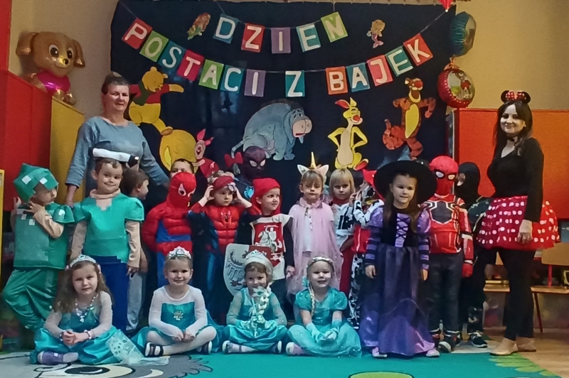 5 listopada obchodzimy nietypowe święto – to Międzynarodowy Dzień Postaci z Bajek. Wybrana data nie jest przypadkowa – jest to dzień urodzin jednego z największych twórców bajek – Walta Disney’a. Ten dzień jest okazją, aby przypomnieć sobie naszych ulubionych bajkowych bohaterów, którzy są nieodzownym elementem dzieciństwa. To okazja, by celebrować i świętować ulubione postacie z klasycznych bajek i innych popularnych filmów i książek dla dzieci. To inicjatywa, która promuje czytelnictwo, kreatywność, gwarantuje rozrywkę. Międzynarodowy Dzień Postaci z Bajek to okazja do wyrażenia swojej kreatywności, a także przypomnienia sobie o wartościach, o przesłaniach zawartych w klasycznych opowieściach. W dniu 5 listopada 2025r. w naszym przedszkolu oraz w oddziale 0 w szkole zorganizowano wydarzenia związane z postaciami z bajek: konkursy, układanie puzzli postaci bajkowych, czytanie bajki ,,Stoliczku, nakryj się", warsztaty plastyczne, które miały na celu uczczenie uwielbianych przez wszystkich postaci, a nawet tańce. Wszystkie dzieci przyszły w tym dniu pięknie przebrane za postacie bajkowe. Były: Czerwone Kapturki, Hermiona, Kot w butach, SuperMan, Elza, Strażacy, Królewna Śnieżka, Jasmina. Organizatorkami tej imprezy były panie z przedszkola, bibliotekarka Katarzyna Kotulska i pani Anna Konarska-Ciupa.