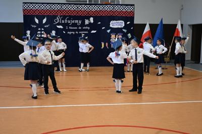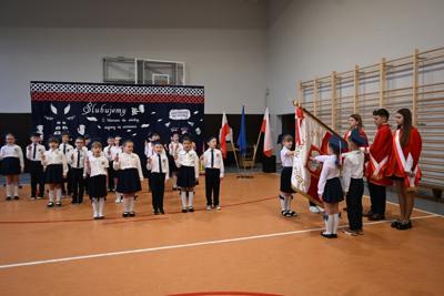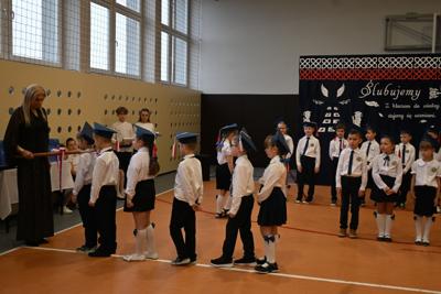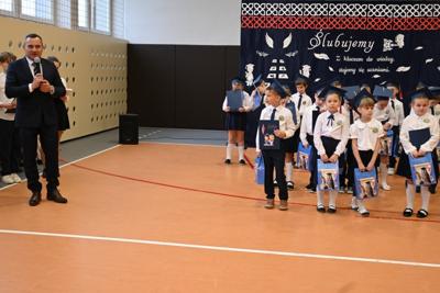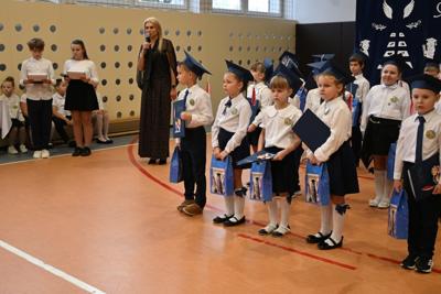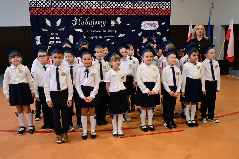Pasowanie na ucznia to wyjątkowo ważne wydarzenie w życiu każdego świeżo upieczonego pierwszoklasisty. To symboliczne przejście ze świata beztroskiej zabawy w przedszkolu, do świata nauki i pierwszych obowiązków. W dniu 21 listopada 2025r. w naszej szkole odbyła się ta piękna uroczystość. Swoją obecnością zaszczycili nas przybyli goście: burmistrz Gminy Włoszczowa Pan Grzegorz Dziubek, Proboszcz Parafii Konieczno ks. Grzegorz Olejarczyk, Przewodnicząca Rady Rodziców Pani Marta Woraczek, nauczyciele i rodzice uczniów klasy pierwszej. Wszystkich zebranych powitała serdecznie dyrektor szkoły Pani Ewa Adrianowicz. Zanim pierwszoklasiści zostali oficjalnie przyjęci do grona społeczności szkolnej stanęli przed nie lada wezwaniem. Pasowanie rozpoczęła część artystyczna przygotowana przez wychowawczynię panią Dorotę Łaskawską. Odświętnie ubrani i bardzo przejęci uczniowie przystąpili do zaprezentowania swoich umiejętności przed publicznością. Do zadań, które mieli wykonać należały: recytacja wierszy, śpiewanie piosenek, taniec ,,Krakowiak" i wiedza na temat ojczyzny. Wszystkie dzieci wspaniale zdały „egzamin pierwszoklasisty”. Doniosłym momentem uroczystości było ślubowanie pierwszoklasistów. W obecności rodziców, gości, dyrekcji i nauczycieli pierwszoklasiści złożyli ślubowanie. Przyrzekali być pilnymi uczniami, dobrymi Polakami, przyjaciółmi przyrody, a swoim zachowaniem napawać dumą rodziców i wychowawców. Następnie pani dyrektor przystąpiła do pasowania uczniów klasy pierwszej. Pierwszaki ubrane w birety przekraczały symboliczne drzwi szkoły. Tym samym dzieci zostały oficjalnie uczniami klasy pierwszej naszej szkoły. Po tak doniosłej chwili rodzice uczniów klas pierwszych złożyli podziękowania dla dyrekcji oraz nauczycieli, a także obdarowali upominkami swoje pociechy. Po uroczystości uczniowie wraz z dyrekcją, zaproszonymi gośćmi, rodzicami oraz wychowawczynią udali się na słodki poczęstunek.