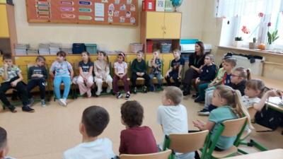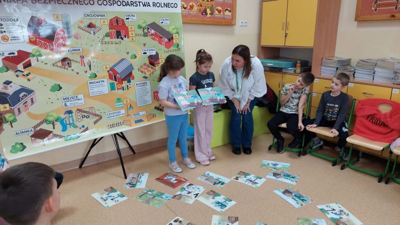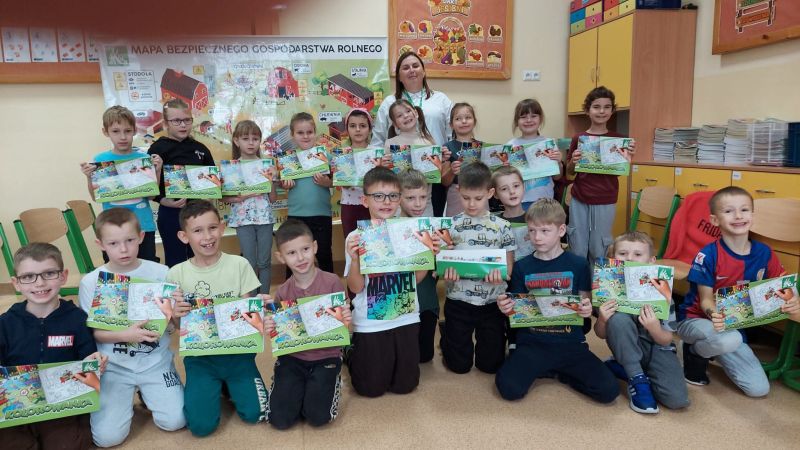 W dniu 26 listopada 2025 r. uczniowie klas I i II wzięli udział w warsztatach pt. „Bezpieczna Wieś”, poświęconych zasadom bezpieczeństwa w gospodarstwie rolnym. Spotkanie poprowadziła Pani Paulina Stryjewska z oddziału PT KRUS we Włoszczowie, która w przystępny i interesujący sposób opowiedziała najmłodszym o tym, jak unikać zagrożeń oraz jak mądrze dbać o swoje bezpieczeństwo zarówno w domu, jak i podczas prac w gospodarstwie.