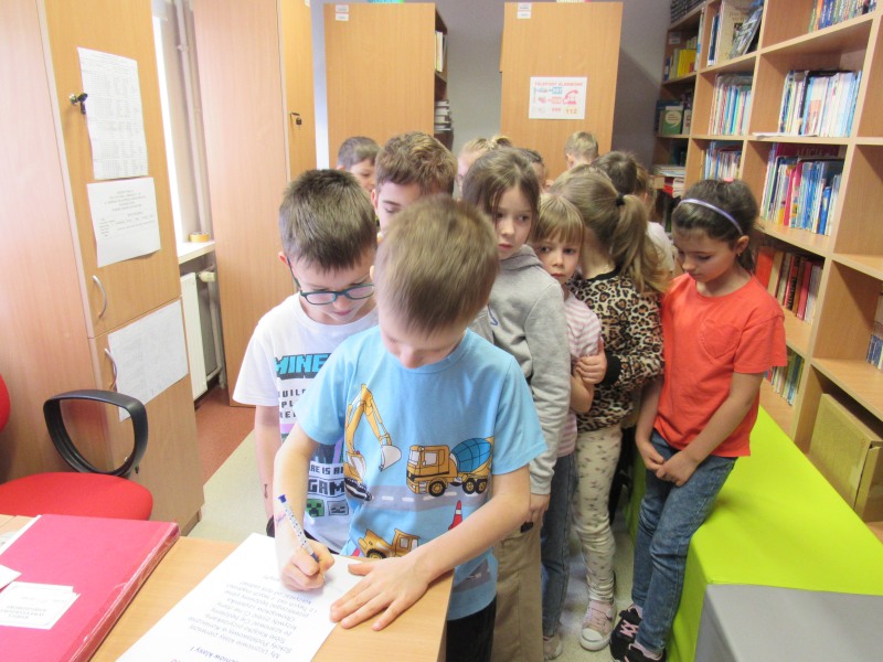 14 stycznia 2026 roku był wyjątkowym dniem dla uczniów klasy pierwszej szkoły podstawowej. W obecności swojej wychowawczyni pani Doroty Łaskawskiej zostali oni oficjalnie przyjęci do grona czytelników biblioteki szkolnej i uroczyście pasowani na czytelnika. Uczniowie poznali bibliotekę i jej zbiory, regulamin biblioteki i pięknie zapamiętali ,,Prośby książek" przedstawione przez bibliotekarza. Punktem kulminacyjnym tej bibliotecznej uroczystości było złożenie przez pierwszaków przyrzeczenia czytelniczego oraz pasowanie. W tym dniu wypożyczyli pierwszą książkę. Spotkanie to miało przypomnieć najmłodszym o potrzebie korzystania z biblioteki, zachęcić do czytania, aby poszerzać wiedzę oraz poznawać piękne postacie literackie.