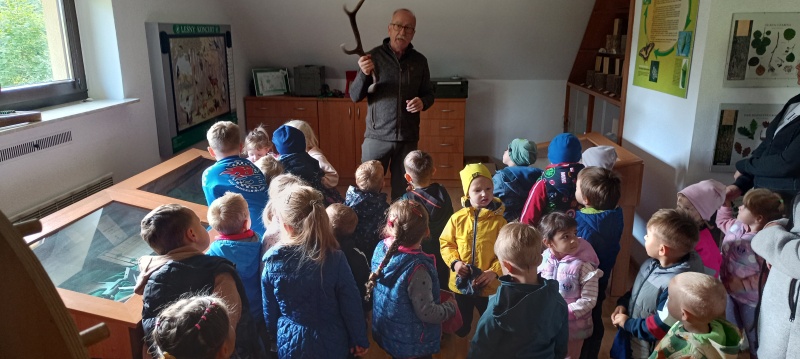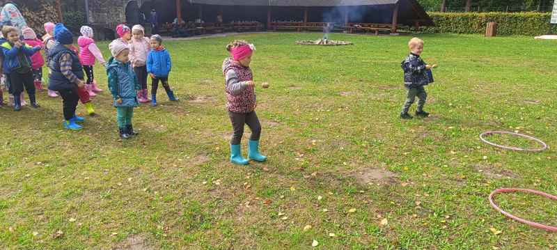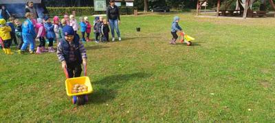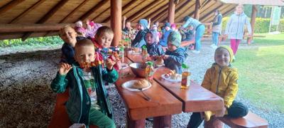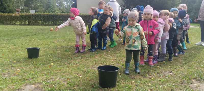 W dniu 24 września 2025r. nasze przedszkolaki wraz z wszystkimi pracownikami placówki oraz Panią dyrektor Ewą Adrianowicz wybrały się do Leśniczówki w Koniecznie, gdzie obchodziliśmy Święto Pieczonego Ziemniaka. To była wspaniała okazja do integracji grup i wspólnej zabawy. Ziemniak był głównym bohaterem dnia i towarzyszył nam cały czas w zabawach i konkursach. Dzieci miały okazję wykazać się sprawnością, szybkością i sprytem podczas różnych konkurencji. Następnie udaliśmy się do Izby Edukacji Leśnej, gdzie zajęcia poprowadził pan Tomasz Hudobski, który przekazał dzieciom wiele ciekawostek o życiu zwierząt w lesie. Po zajęciach i zabawie na świeżym powietrzu pieczona kiełbaska i ziemniaczki smakowały wszystkim wyśmienicie. Ten jesienny dzień pachnący pieczonym ziemniakiem na pewno wszyscy będziemy długo pamiętać.