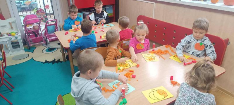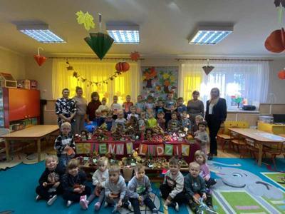 W dniu 29 października 2025r. w naszym przedszkolu obchodziliśmy Dzień Dyni. Była to idealna okazja, aby dzieci poszerzyły wiedzę o tym bardzo zdrowym i urodziwym warzywie. Poznały różnorodność dyni. Odbyło się wiele zabaw z udziałem dyni. Ponadto odwiedziły nas w tym dniu Pani Katarzyna Kotulska z Biblioteki Publicznej oraz Pani Barbara Tarnik z Domu Kultury. Przedszkolaki wysłuchały książki pt. ,,Franklin i wielka dynia" oraz wykonały pracę plastyczną
