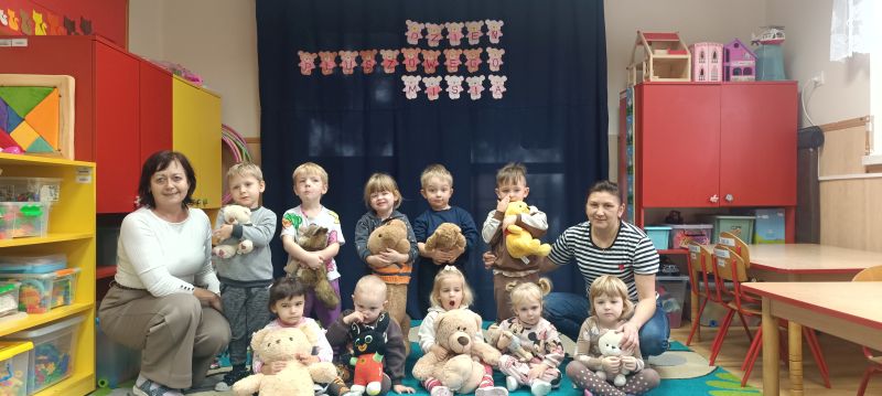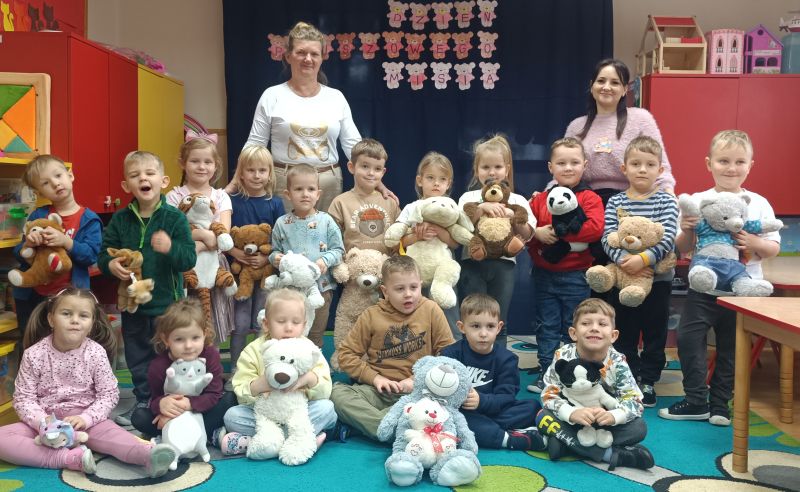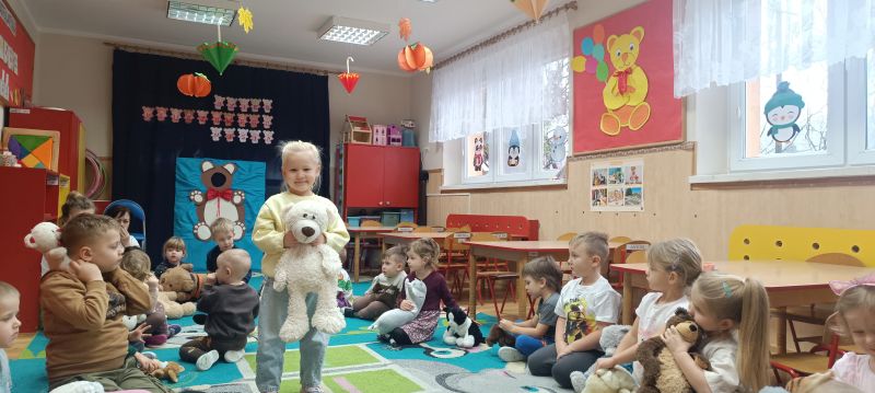 Dziś nasze przedszkolaki uczciły Dzień Pluszowego Misia. Dzieci podczas zajęć miały okazję zaprezentować swoje misie, następnie obejrzały prezentację multimedialną o historii powstania pluszowego misia. Ponadto nauczyły się wierszyka o misiu oraz śpiewały piosenki o misiach. Przedszkolaki bardzo chętnie brały udział w zabawach taneczno-ruchowych oraz rozwiązywały zagadki, a także wykonały pracę plastyczną. Jednak najwięcej radości sprawiła dzieciom sesja fotograficzna, podczas, której na chwilkę stawały się dużym misiem. To był udany dzień - pełen zabawy i radości.